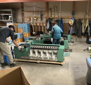 アスパラ選別・調整作業。 2024.09.02 農業日誌 Post Share Hatena Pocket RSS feedly Pin it この記事のタイトルとURLをコピーする 収穫後の選別・調整作業です。 オギワラのアスパラ選別機で長さを27㎝に揃えサイズごとに選別する作業です。 アスパラの穂先の開きや傷、曲がりを確認します。 この時期になると細いサイズが増えてきます。 Post Share Hatena Pocket RSS feedly Pin it この記事のタイトルとURLをコピーする アスパラガスの品種.1:スーパーウェルカム 前の記事 アスパラガス現地指導会in喜多方市慶徳町 次の記事